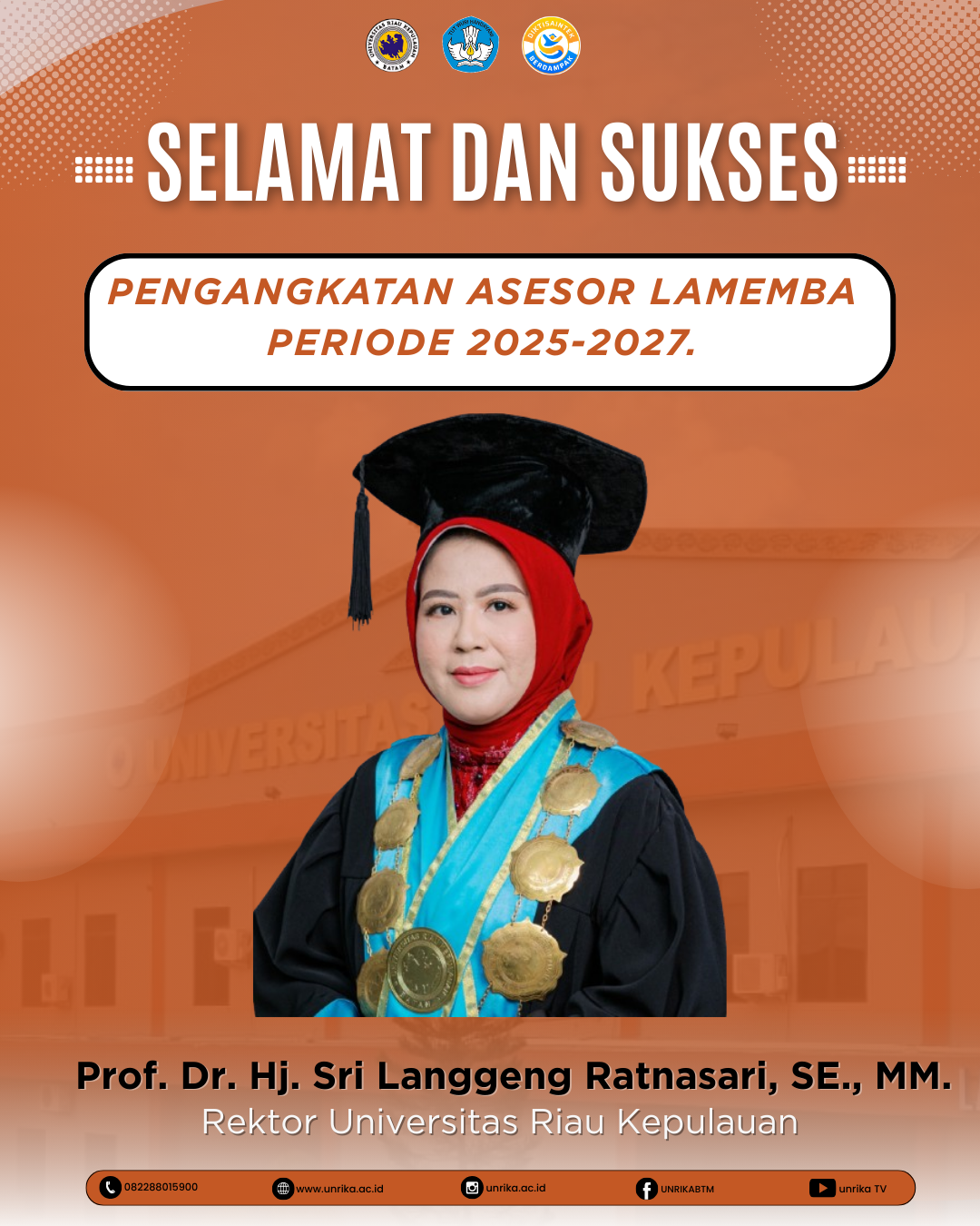 Selamat dan sukses kepada Prof. Dr. Hj. Sri Langgeng Ratnasari, S.E., M.M., Rektor Universitas Riau Kepulauan, atas pengangkatan sebagai Asesor LAMEMBA Periode 2025–2027.